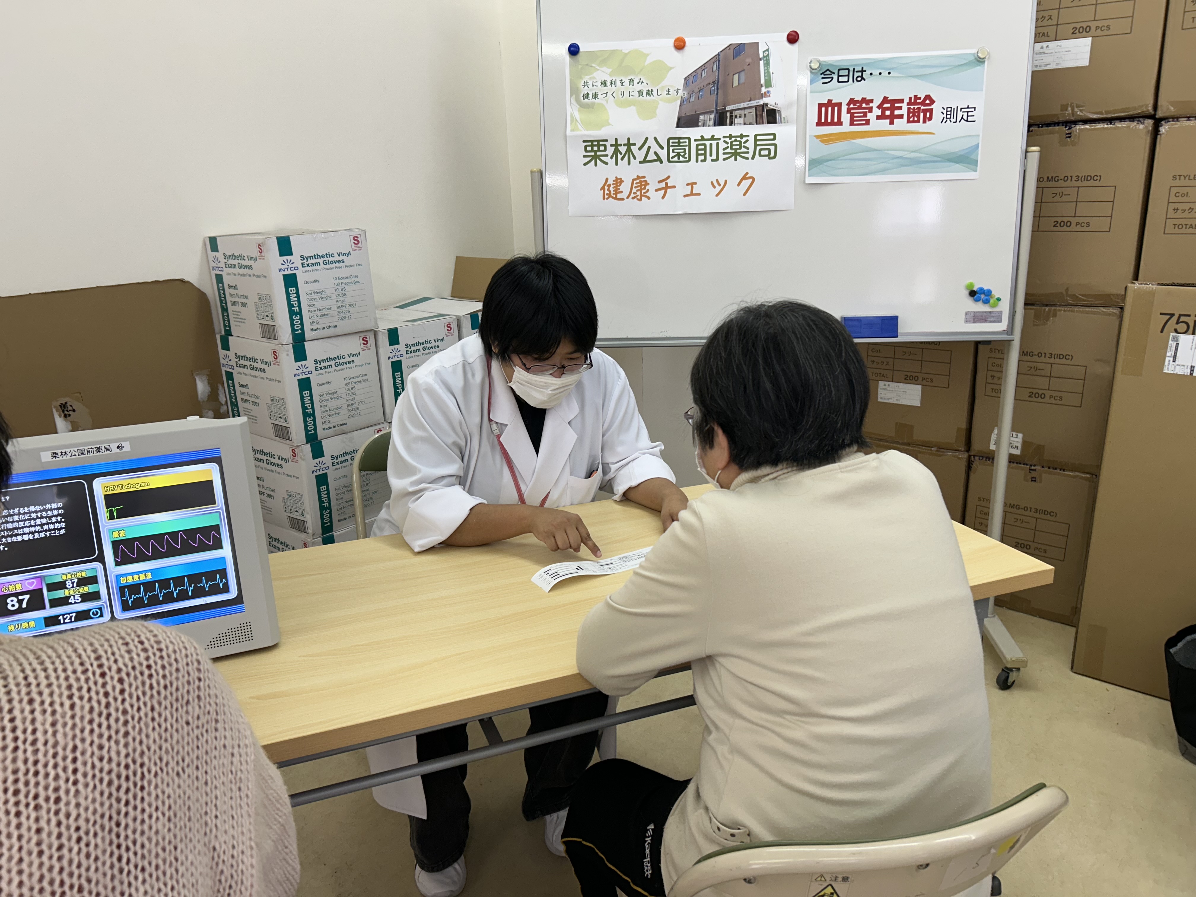 1/28に地域活動のごきげんカフェで血管年齢測定を行いました!たくさんの方が測定に参加してくださいました。測定結果を見ながら薬剤師から数値などの説明をさせていただきました。食事や運動など生活習慣を見直すきっかけにもおすすめです。